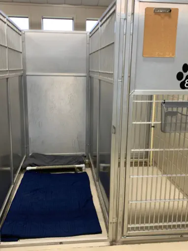 •Climate controlled facility•Cot with bedding•Food, water and medication as prescribed by you•Private outside time in fenced exercise yard 2-3 times per day•Owner-provided medications administered at no charge•Dimensions: 3x6