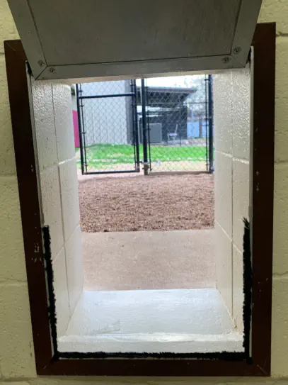 •Owner-provided medications administered at no charge•Dimensions: 6x6.5 indoor portion and 6x13.8 outdoor portion. Includes metal dog door